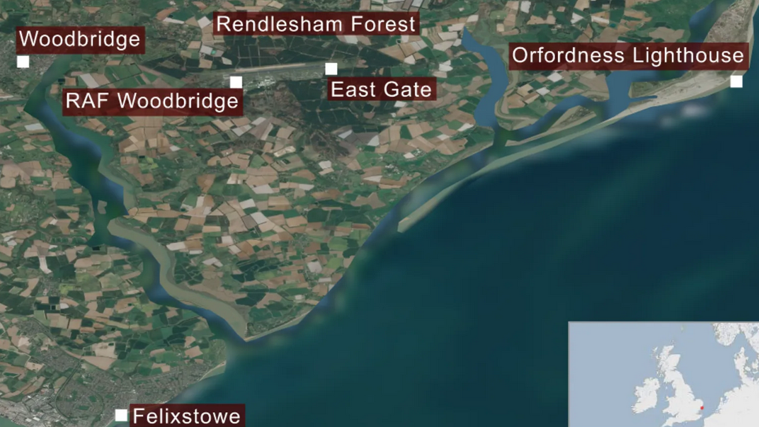 蓝道申森林事件,又称英国的罗斯威尔事件,发生时间为1980年12月下旬,地点位于英格兰东部海岸城市Suffolk萨福克郡的RAF Woodbridge伍德布里奇皇家空军基地外一处名为蓝道申Rendlesham Forest的树林中,地图位置位于萨福克郡伊普斯维奇镇以东约 13公里,该林区归当地林业委员会所有,由大约15平方公里的针叶林组成,其中散布着阔叶林带、荒草地和湿地。事件发生时附近有两个军事基地,即森林北面的皇家空军本特沃特基地RAF Bentwaters,和事件的当事人单位,皇家空军伍德布里奇基地,伍德布里奇基地在森林的西南方向,基地从森林外的西边一直向东延伸到森林中一英里,基地的东门就在森林深处,也是事发地点的方向,在往东就是一处农社和田地,而位于森林边缘以东约8公里处的海边,坐落着英国当时最明亮的灯塔,奥福德灯塔Orfordness Lighthouse。