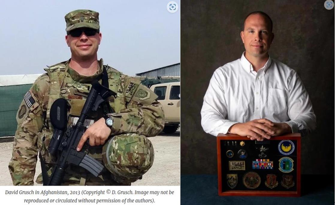 大卫·查尔斯·格鲁什,1987年出生于宾夕法尼亚州匹兹堡,2005年获得美国空军物理学奖学金,加入美国空军并服役14年,阿富汗战争期间,他是美国空军的一名授勋战斗军官,也是国家地理空间情报局(NGA)国家侦察局(NRO)的退伍军人。从2019年到2021年,他是NRO在不明空中现象工作队Unidentified Aerial Phenomena Task Force的代表。从2021年底到2022年7月,他是NGA UAP分析的联合负责人,也是工作组的代表。他协助起草了《2023年国防授权法案》National Defense Authorization Act of 2023,其中包括报告不明飞行物的规定,包括举报人保护和对保密命令及协议的豁免,法案还要求美国军方回顾1945年以来的UFO目击事件