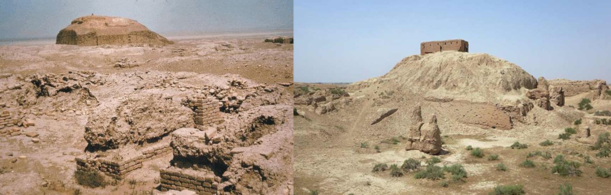 鉴于底格里斯河-幼发拉底河平原缺乏矿产和树木。苏美尔人的建筑由平凸泥砖制成,没有用砂浆或水泥固定。早期乌鲁克人的原始象形文字表明,“石头很稀缺,主要被切割成块状和印章。砖是普通的建筑材料,城市、堡垒、寺庙和房屋都用它建造,城市设有矗立在人工平台上的塔楼,房子也有塔状的外观。由于泥砖建筑最终会恶化,因此它们会定期在同一地点被摧毁、夷为平地并重建。这种不断的重建逐渐提高了城市的标高,从而被抬高到周围的平原之上。由此产生的山丘,被称为tells,遍布整个古代中东地区。苏美尔建筑中最令人印象深刻的是金字塔形建筑,作为支撑寺庙的大型分层平台,现存的最具有代表性的金字塔就是乌尔神庙,,位于今伊拉克济加尔省纳西里耶附近的乌尔市。该建筑由乌尔纳姆国王建于公元前2100年,是乌尔的守护神月神南娜的神殿,但在公元前 6 世纪的新巴比伦时期倒塌成废墟。