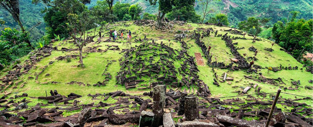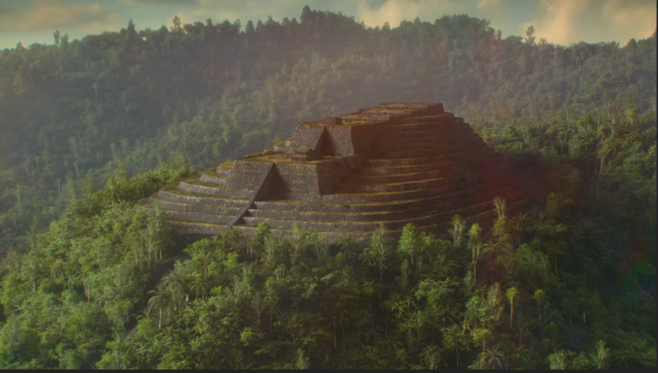 印尼巴东山遗址位于印度尼西亚爪哇省Campaka坎帕卡区的卡里亚穆克提Karyamukti 村,该遗址位于海拔885米高的一座山死火山之上,古农巴东由一系列的五个人工梯田组成,一个长方形和四个梯形,沿海拔高度依次排列,但随着高程的增大而逐渐变小,第1阶地最低、最大,第5阶地最高、最小。这些阶地沿中央西北-东南纵轴分布。它们是人造平台,通过降低高点和填充低点,来达到一个平坦的表面。露台的外围由水平堆叠的火山多边形柱构成的挡土墙组成。露台由370级台阶的中央楼梯进入,倾斜45度,长度110米,乍一看,古农巴东遗址并不像金字塔。相反,它看起来像一座大山,上面覆盖着破碎的古代火山岩柱,有点像史前的墓地,所有的墓碑都被推倒了。