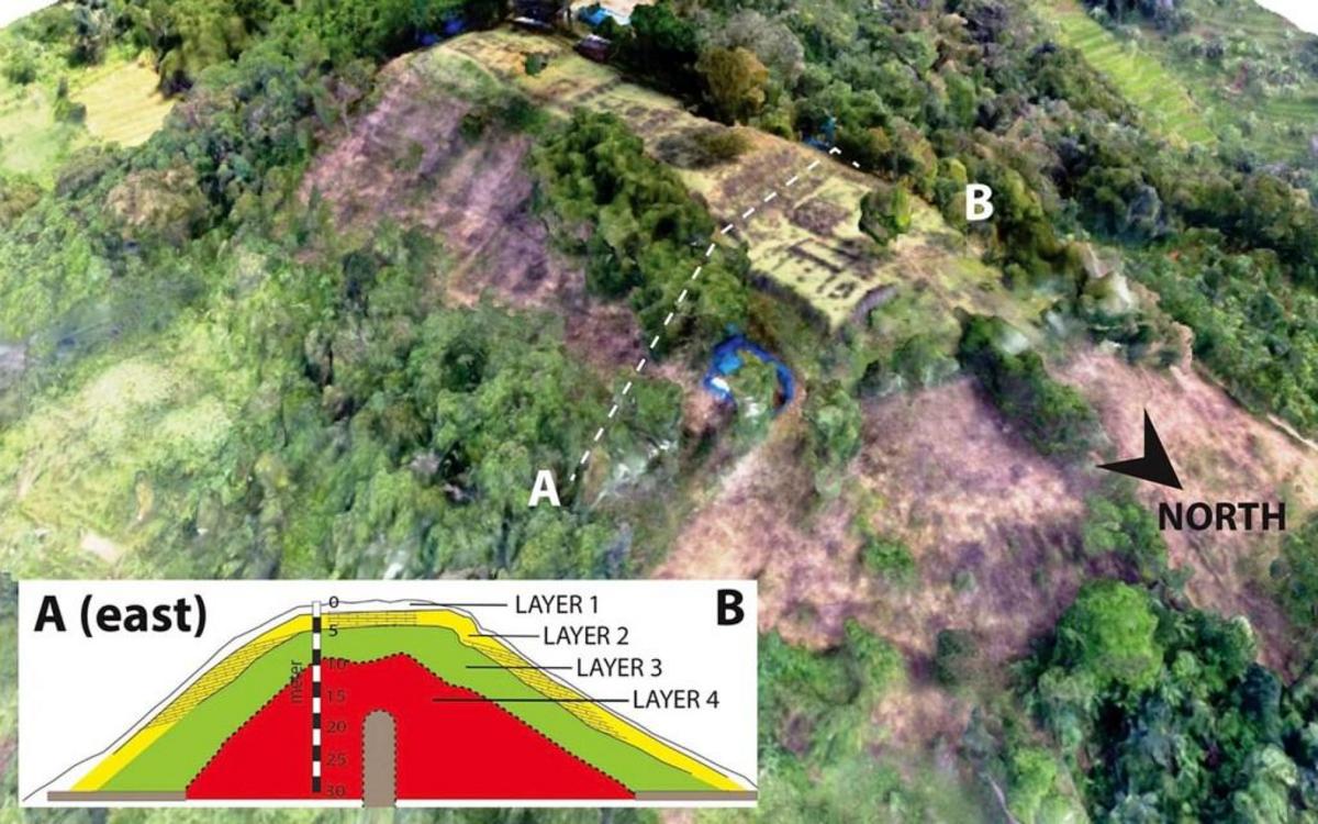 而对于古农巴东遗址,纳塔维贾贾认为该地区在农业可能尚未发明的时候,先进的建筑实践就已经存在了,甚至早于最后一个冰河时代,冰河时代结束于公元前11500年,纳塔维贾贾团队认为该遗址是分阶段建造的,古农巴东金字塔有点像一个三层的蛋糕,每一层都是相隔数千年建造的。第一阶段即第一层,开始于最后一个冰期的某个时候,在1.6万到2.7万年前之间。然后,似乎古人通过在一座死火山的顶部雕刻熔岩来建造金字塔的第一层。虽然这个遗址似乎已经被遗弃了数千年——“导致了严重的风化,”研究人员写道——古人似乎在公元前7900年到6100年之间回到了古农巴东,第二组人继续在金字塔上建造,他们在上面加了一层砖和石柱,然后在不确定的时间盖上一层土,这就是第二层,另一组人在公元前2000年到公元前1100年之间又回到了金字塔来构建最后一层。他们在古农巴东添加了表土、石头梯田和其他元素。