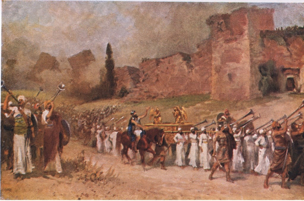大卫王因此害怕,于是把约柜送到Gittite, 迦特人Obed-edom俄别以东的家里,而不是把它带到锡安,它在那里呆了三个月。之后大卫听说因俄别以东家里有约柜而被神赐福,于是就让利未人把约柜带到锡安,在锡安,大卫把约柜放在预先准备的帐篷里,他在那里做个人祷告和献祭,分发食物给百姓,并为他的家庭和百姓祈福。大卫曾计划为约柜建造一个圣殿,但先知拿单告诉大卫神不需要建立圣殿,这个计划也就终止了。公元前 1035 年,以色列人围攻Rabbah拉巴城,约柜一直在军队当中。在大卫的第三个儿子押沙龙背叛大卫的时候,大卫从耶路撒冷逃了出来,约柜一直被他带着,直到叛乱平息后,他吩咐祭司撒督将约柜运回耶路撒冷。
