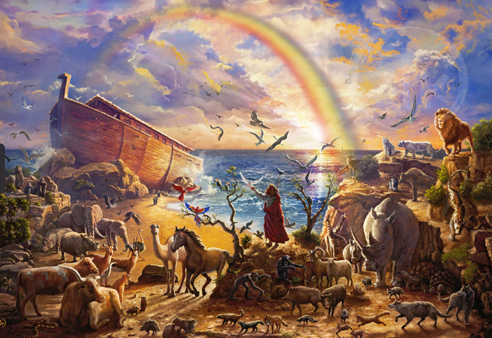 人类对大洪水最为熟知的一个版本要晚于苏美尔的记载,那就是犹太人公元前 9 世纪的希伯来文献《创世记》,也就是圣经旧约的前半部分,用尘土创造人类的耶和华神,由于人类的腐败决定淹没地球。然后,耶和华指示主角挪亚建造方舟,以保护他和动物的生命。方舟完成后,挪亚和他的家人,还有地球上所有动物的代表被召唤进入方舟,毁灭性的洪水淹没了方舟之外的所有生命,经历了数月洪水退去,方舟最后停在阿勒山上,所有乘客都下了船,并得到耶和华的应许,永远不再为人类的缘故诅咒地球。然后,上帝在天空中放了一道彩虹,作为他对这个圣约中应许的契约见证。尽管苏美尔洪水传说和犹太人洪水传说有很多相似之处,但在巴比伦的记载苏美尔洪水故事中,洪水是众神之间分歧的结果,而在创世记中,它是人类道德败坏的结果,目前各种文学作品中提到的洪水一般指诺亚经历的这次。
