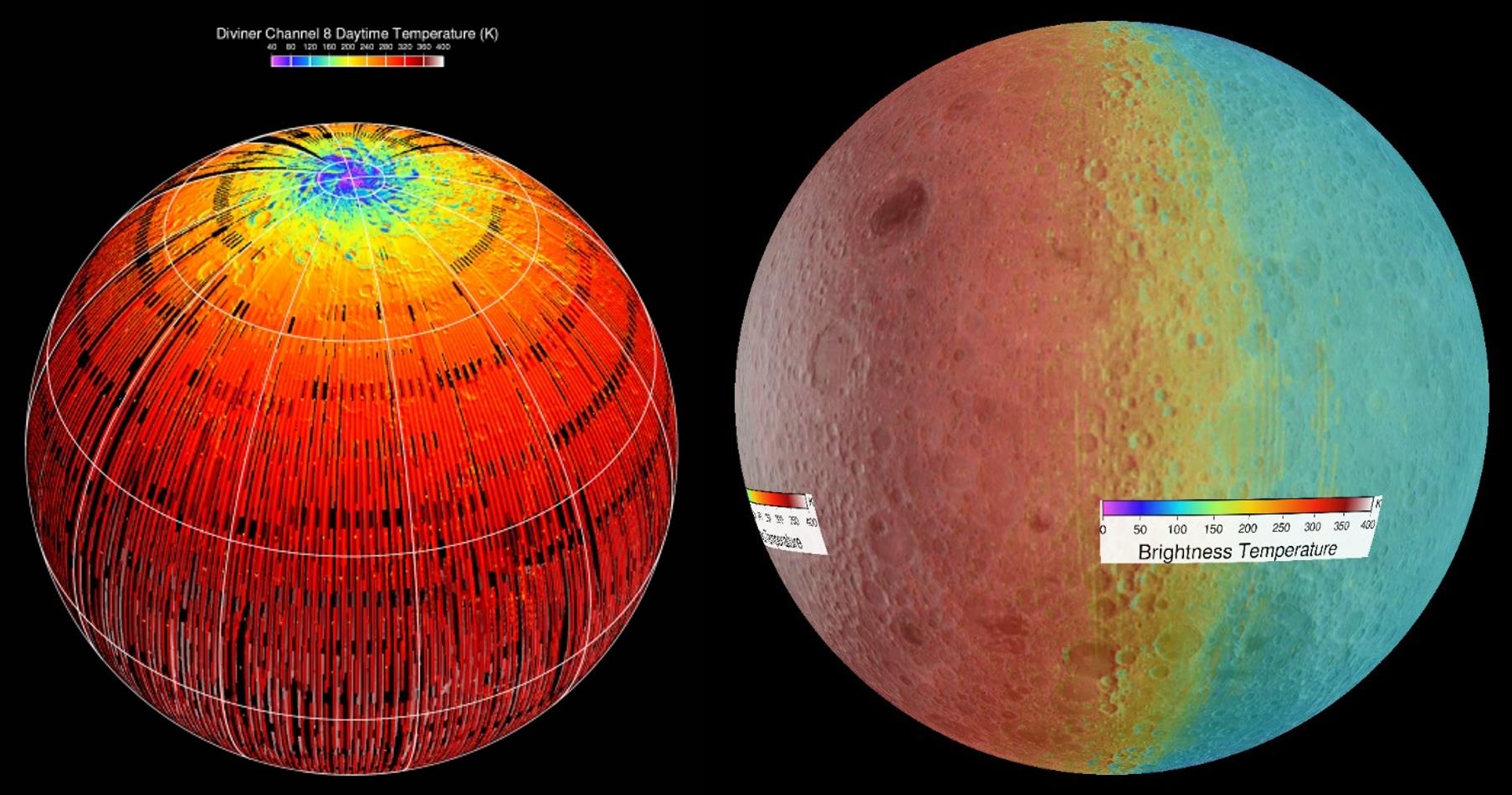 4.1.6 月球表面南北极温度变化(左)和背光面温度变化(右)